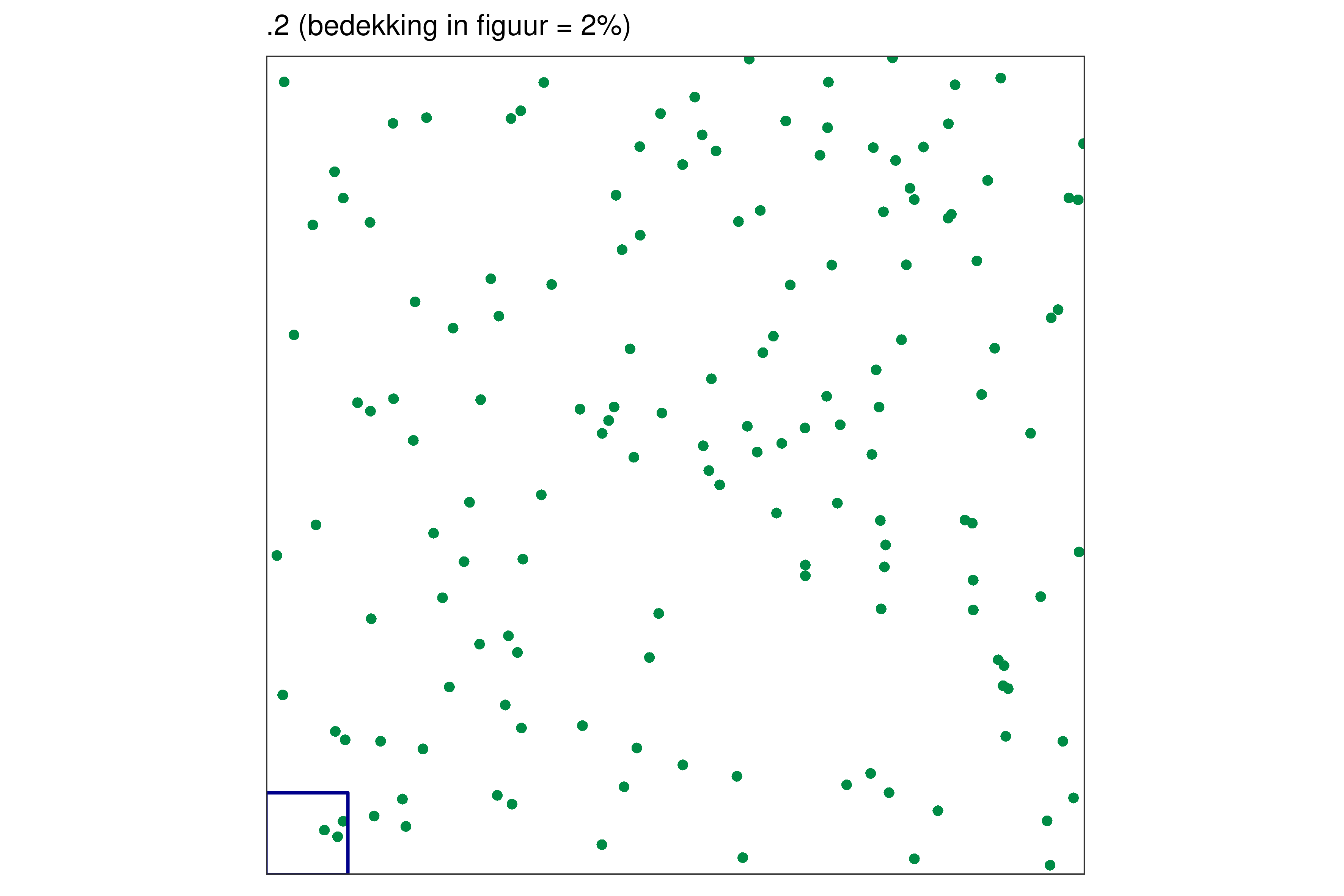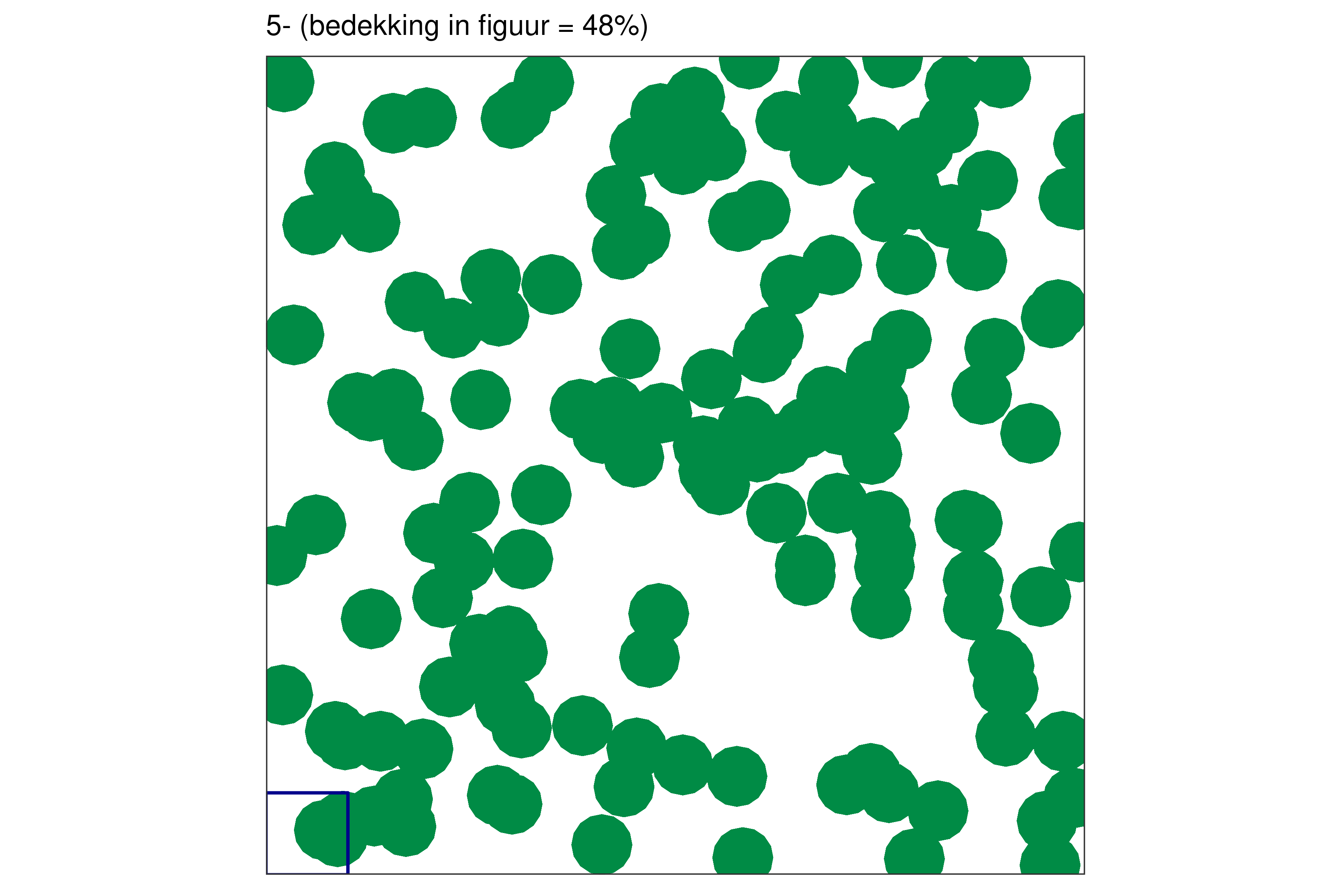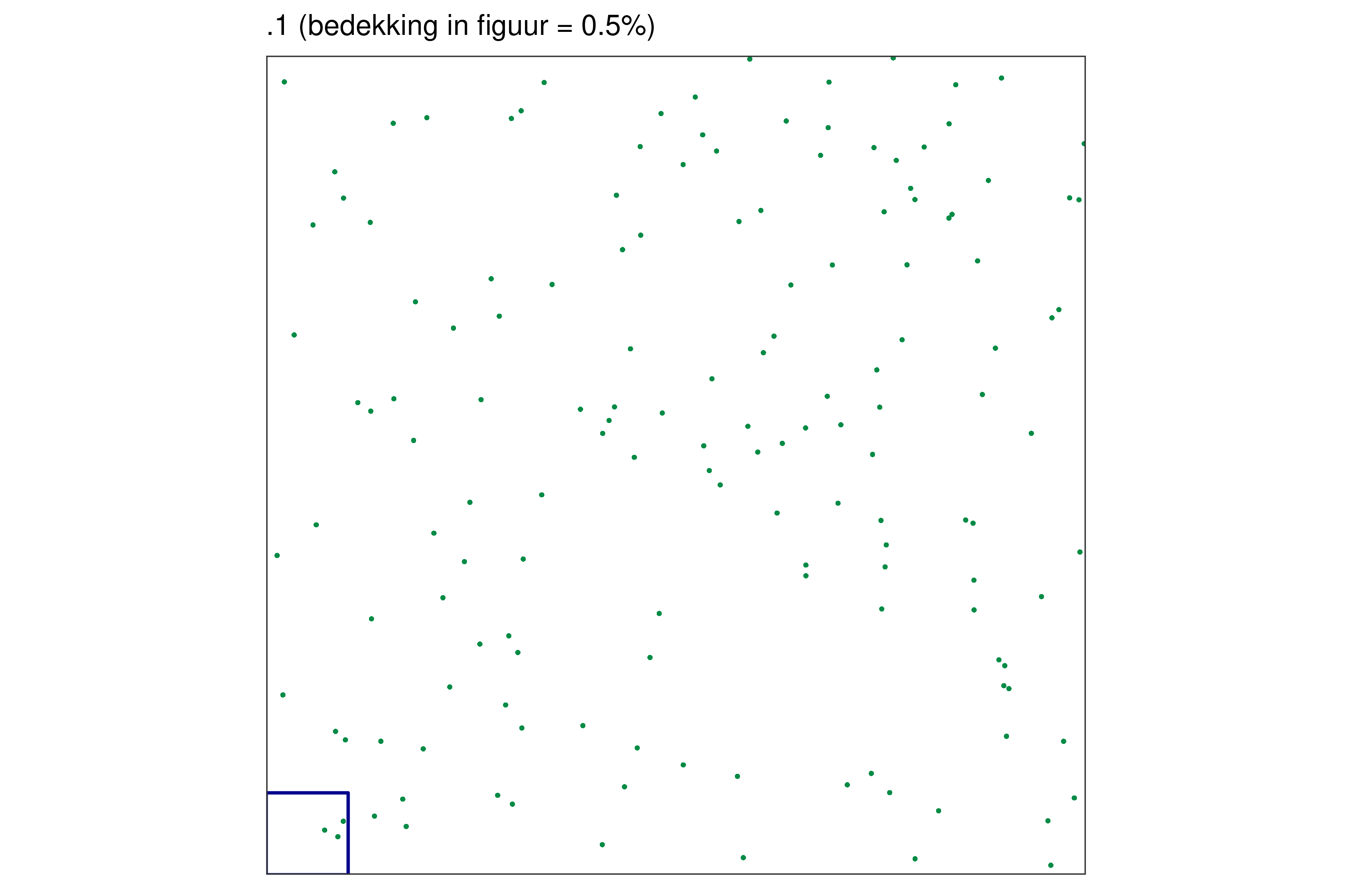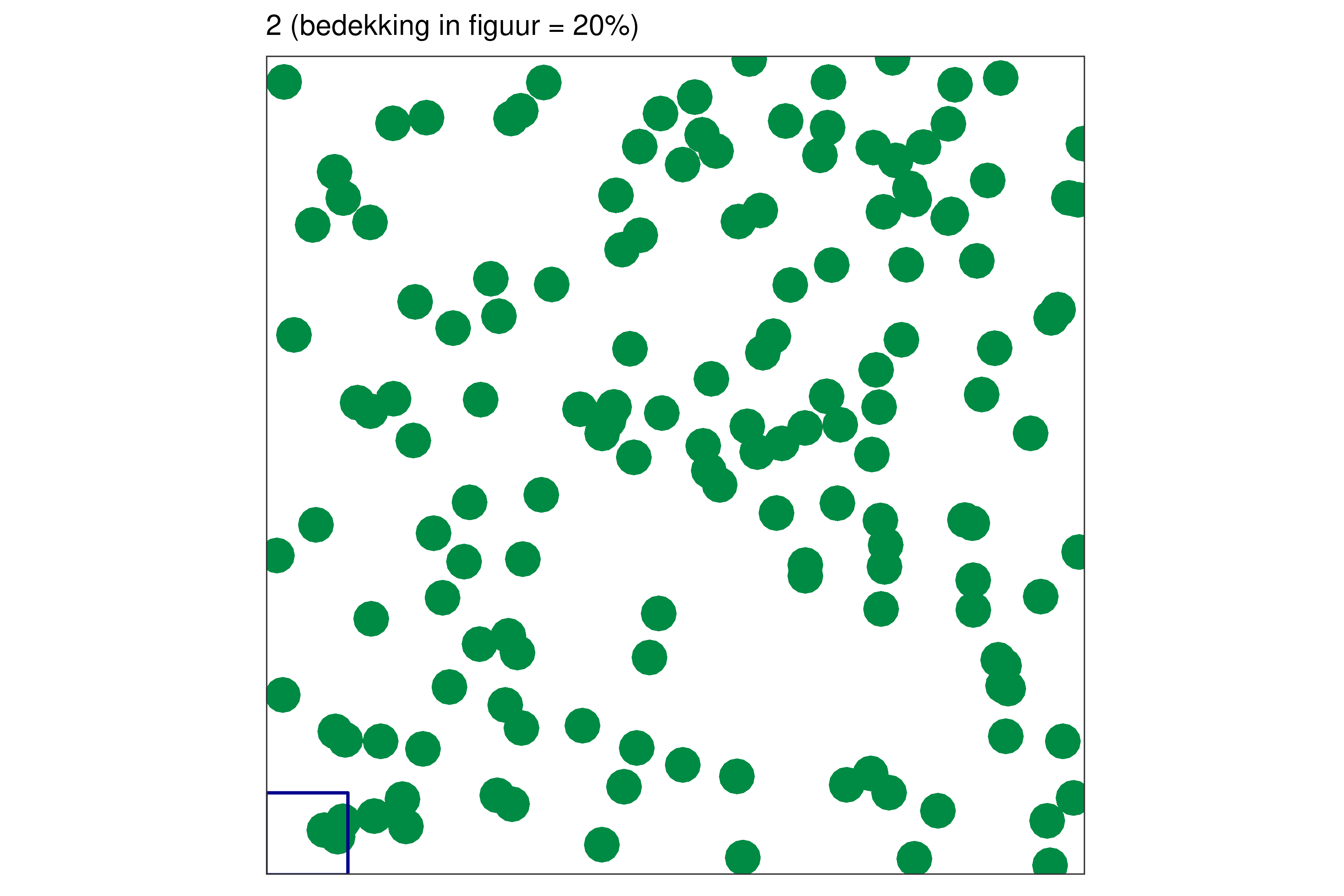 Elk blauw vierkantje in de linkerbenedenhoek bij elke figuur vertegenwoordigt 1% van de volledige oppervlakte.