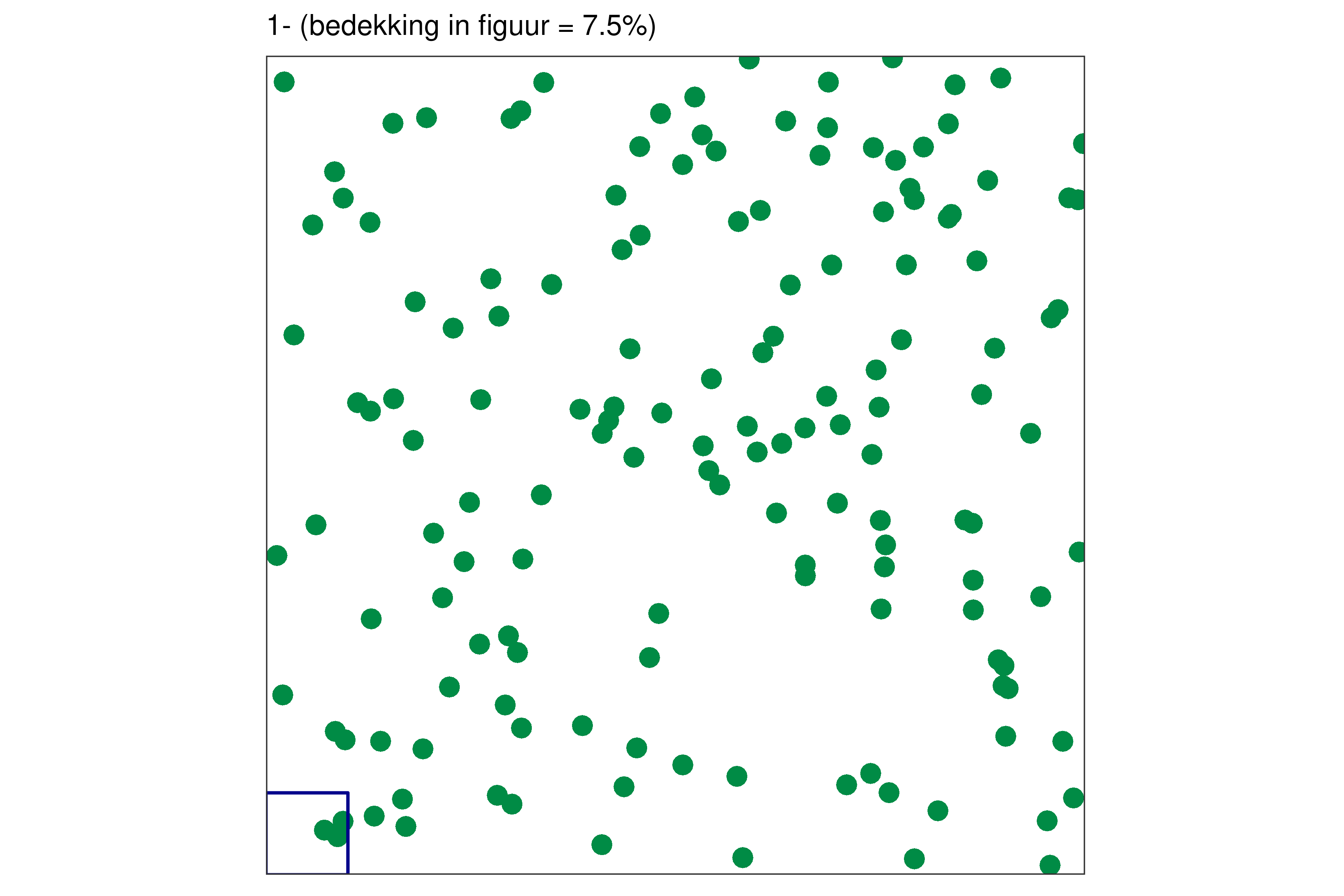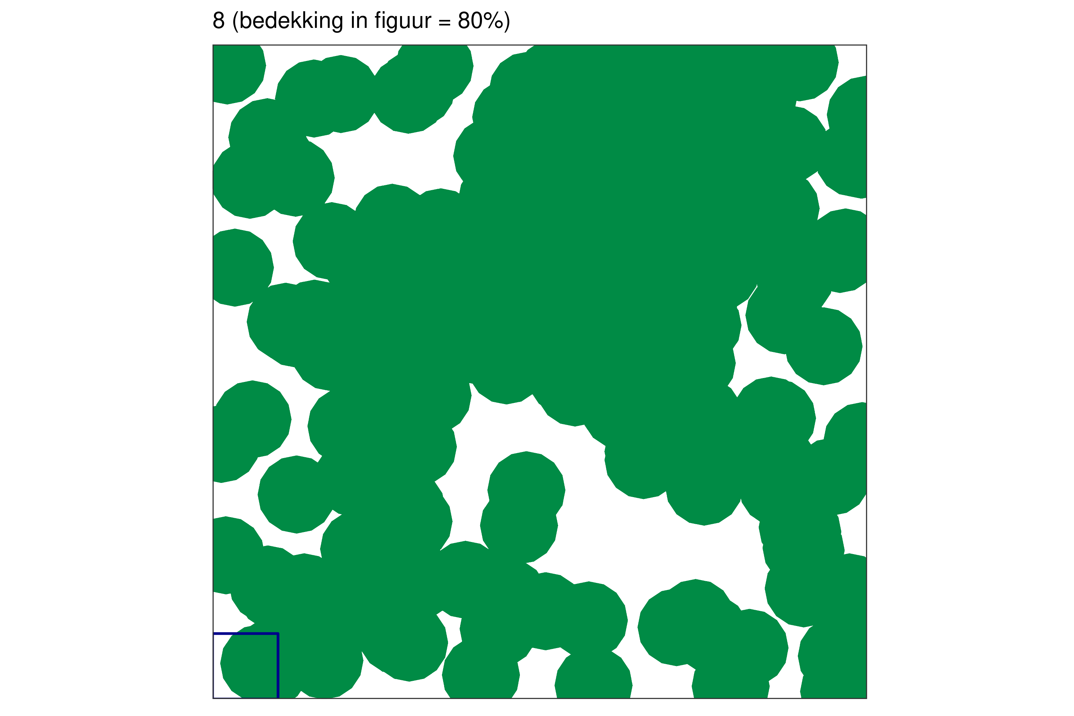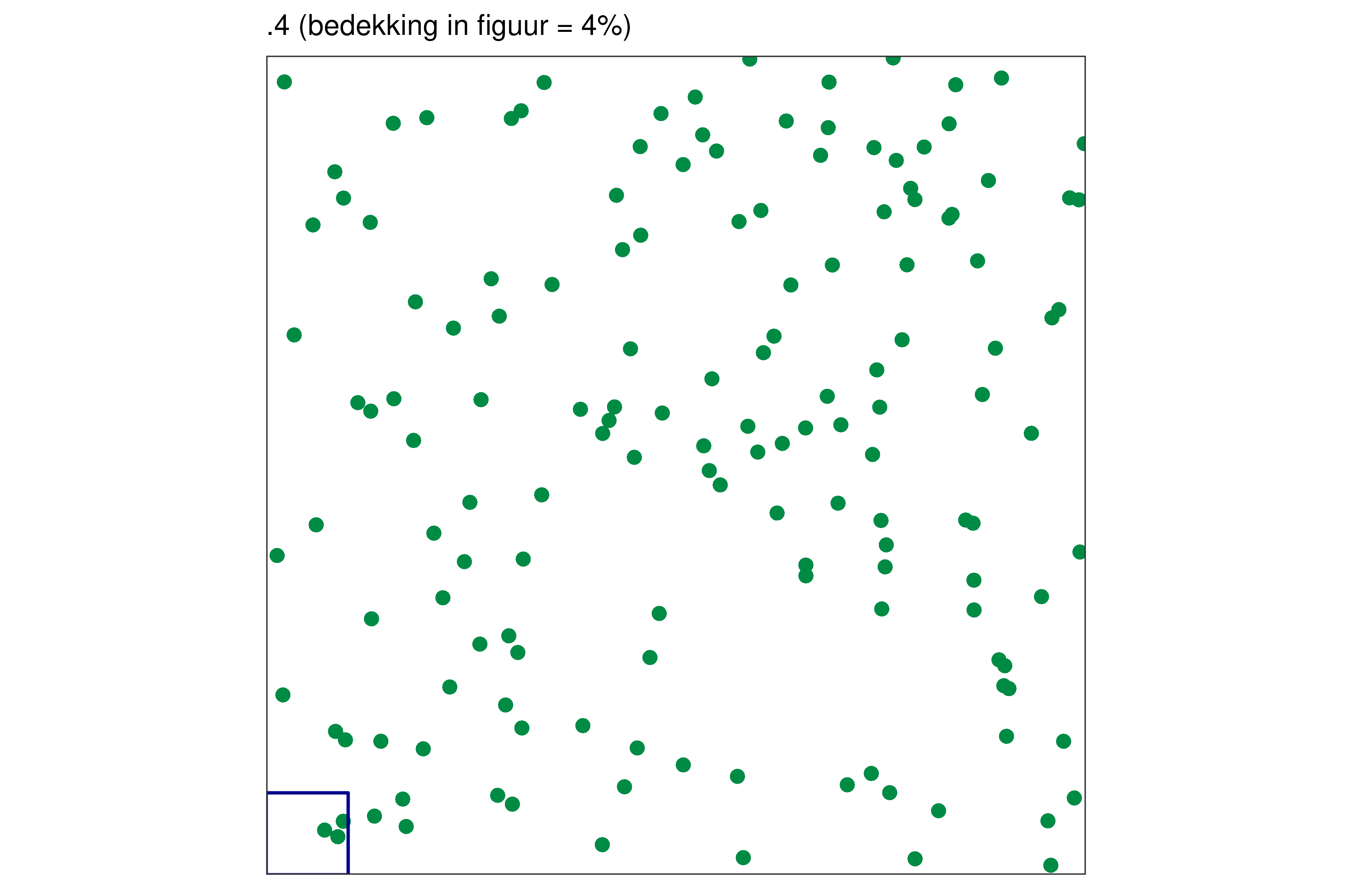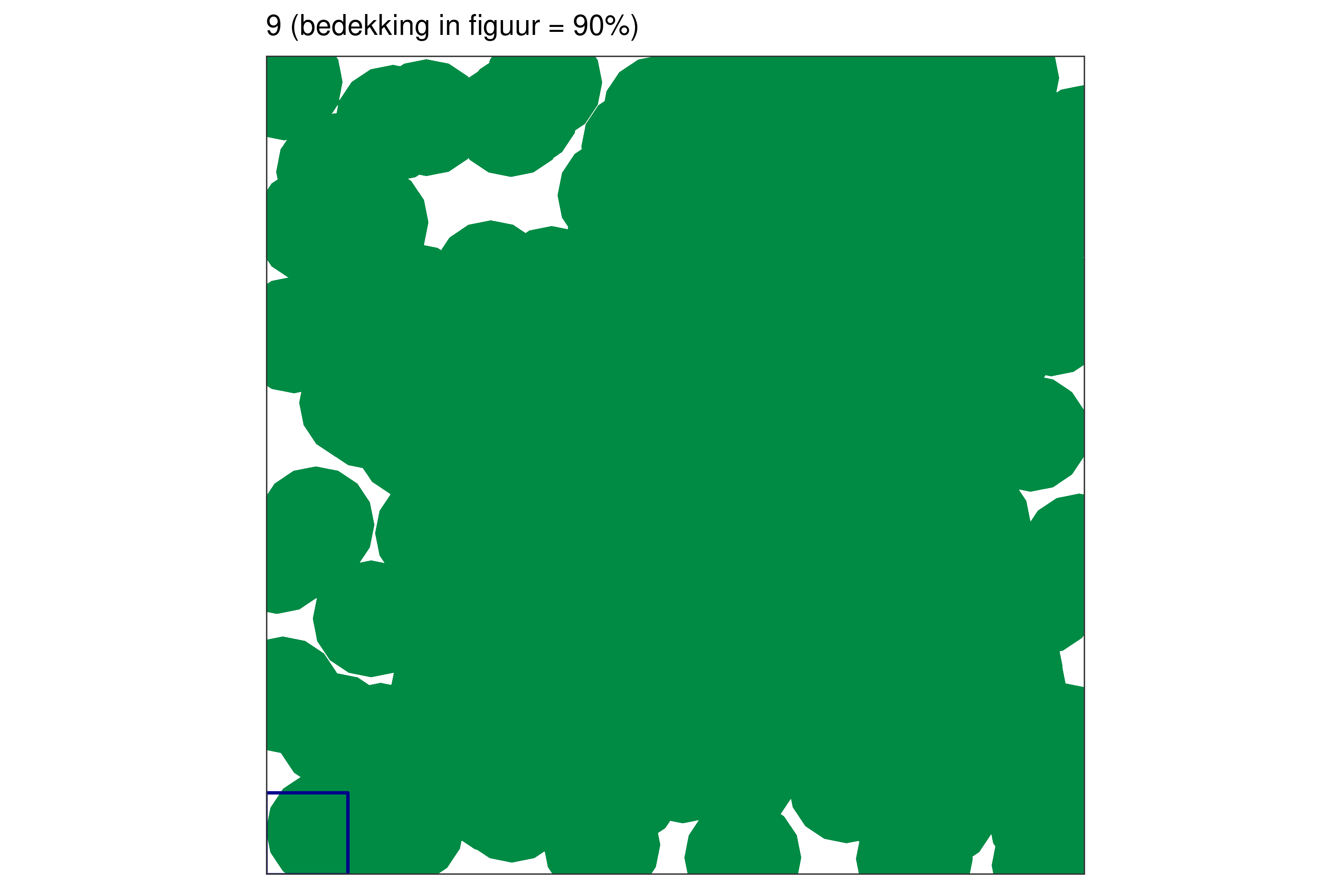 Elk blauw vierkantje in de linkerbenedenhoek bij elke figuur vertegenwoordigt 1% van de volledige oppervlakte.