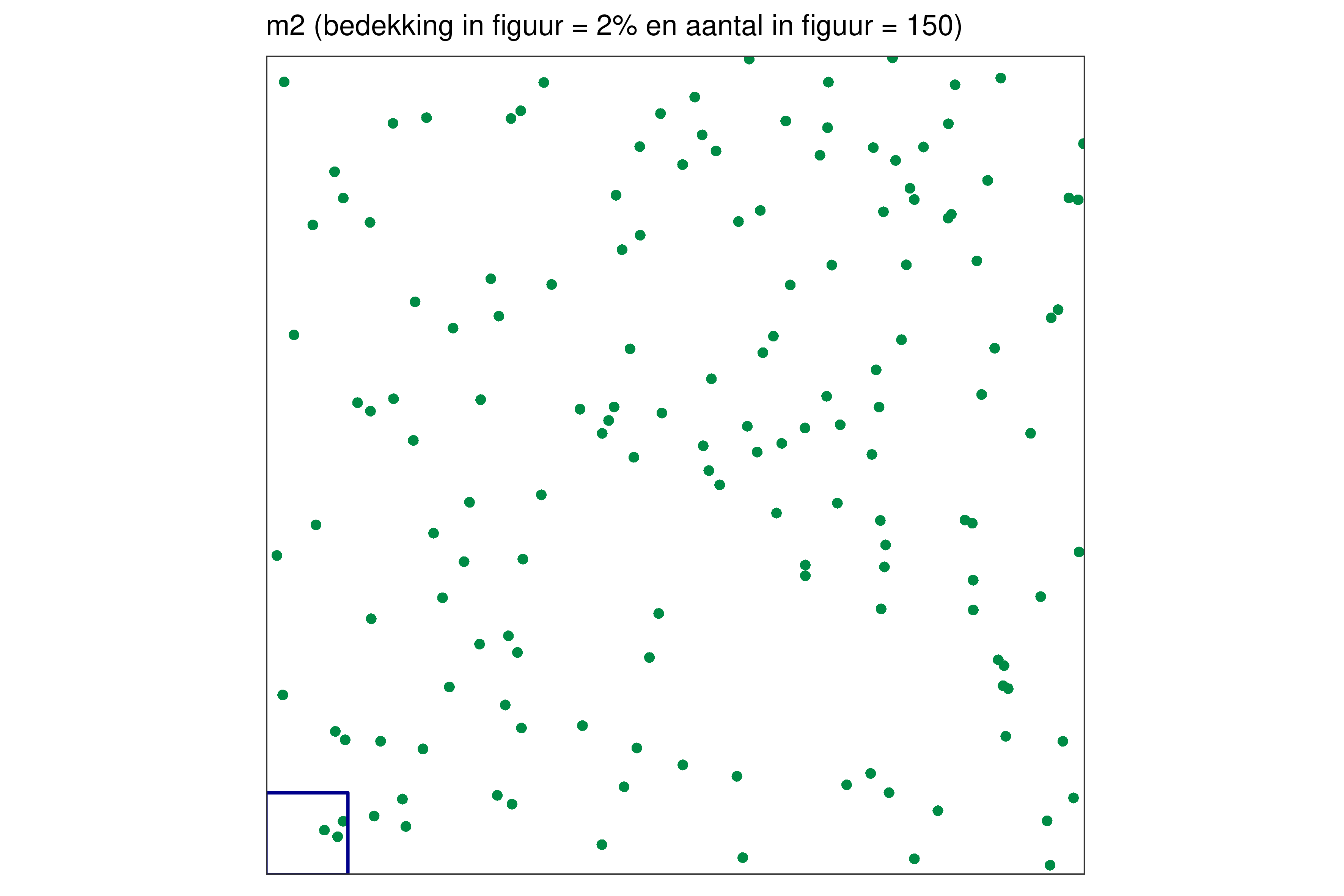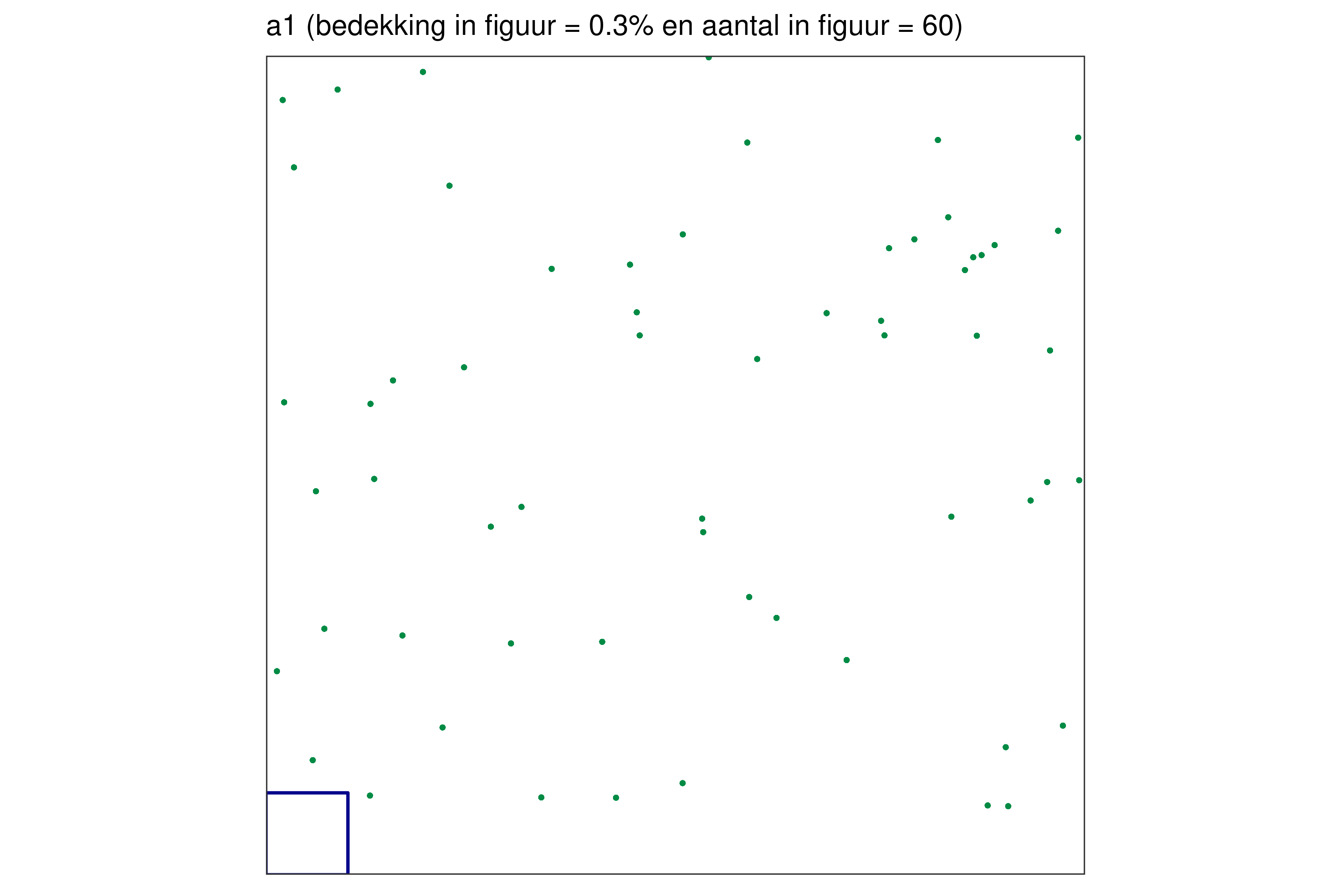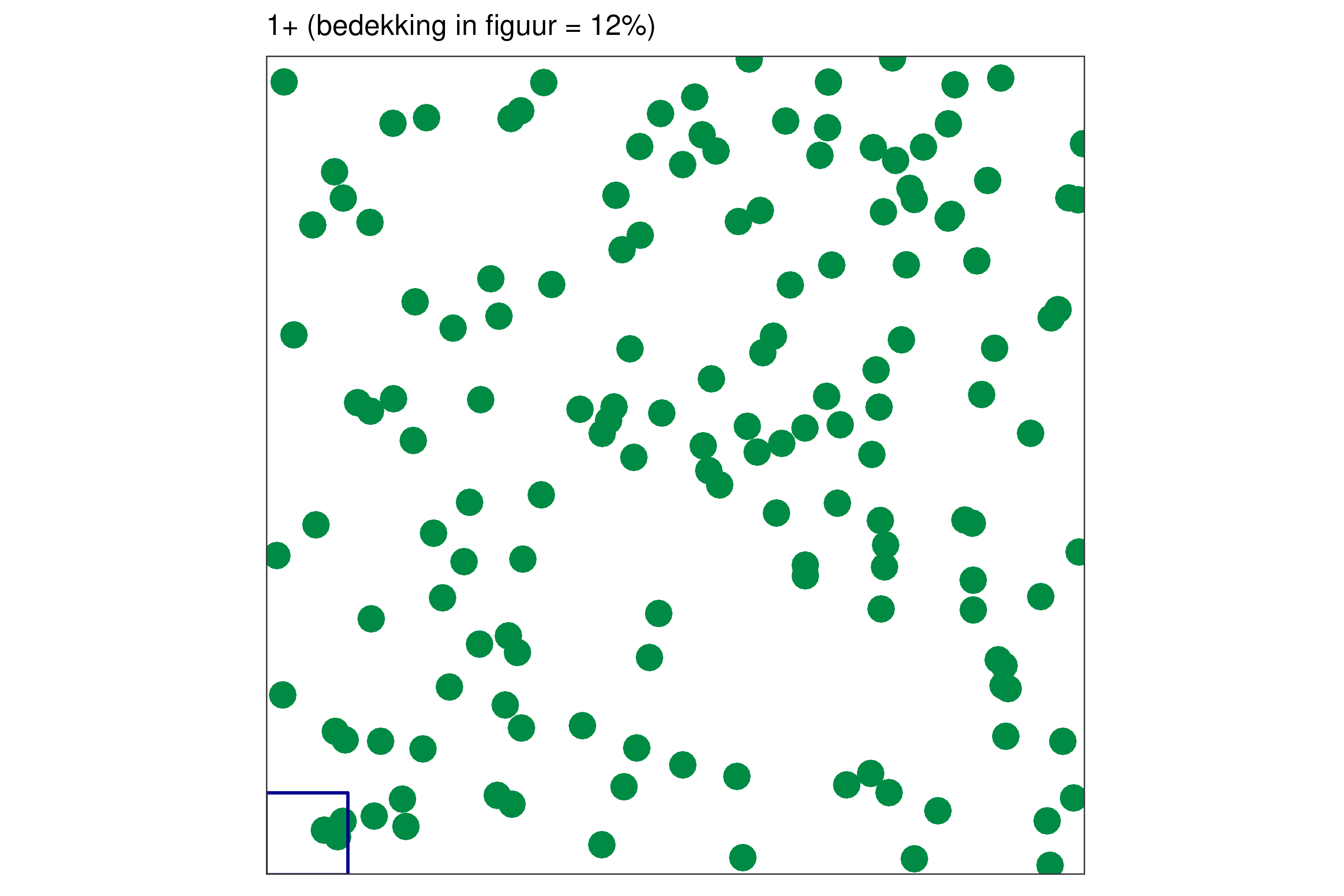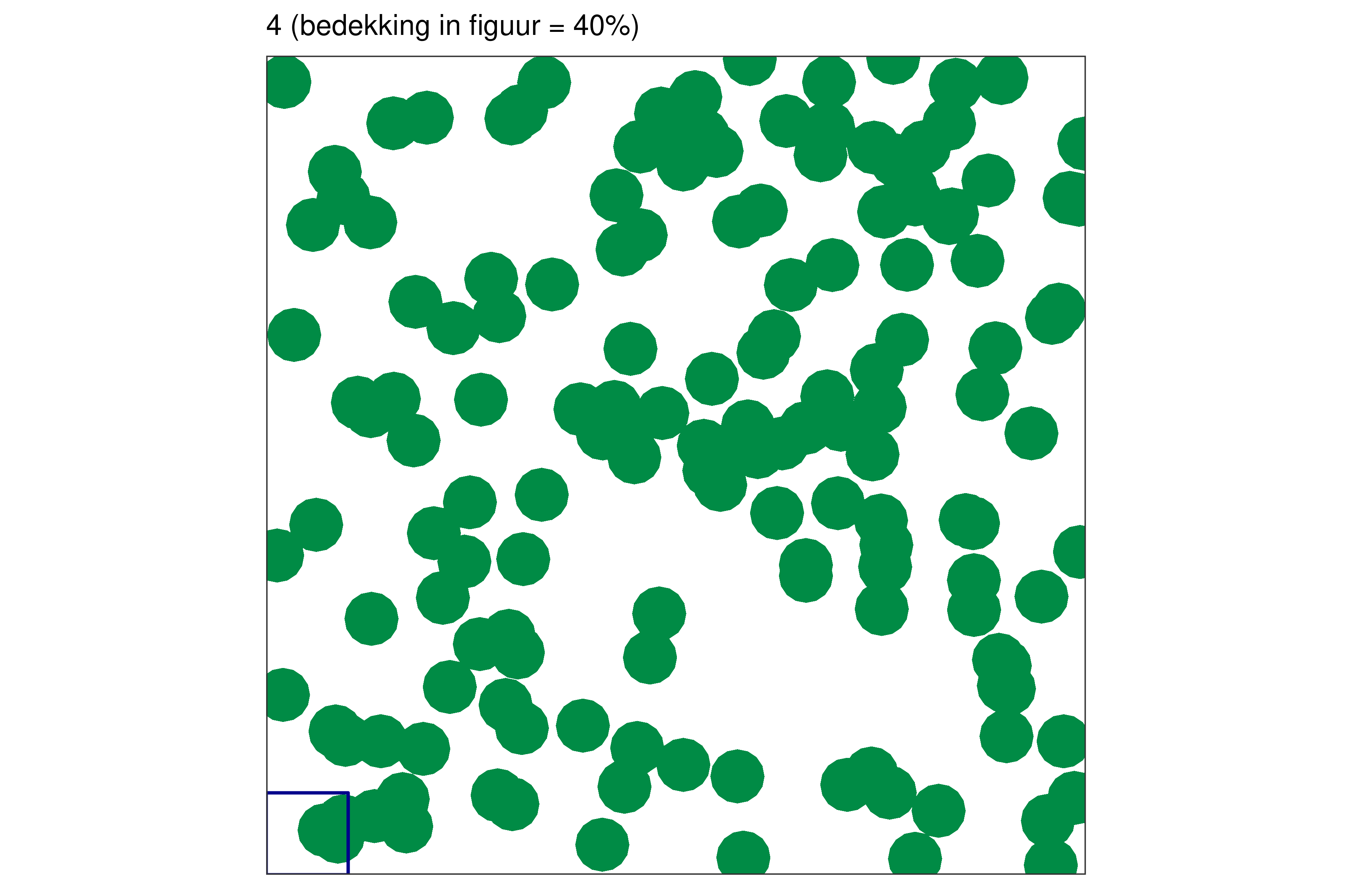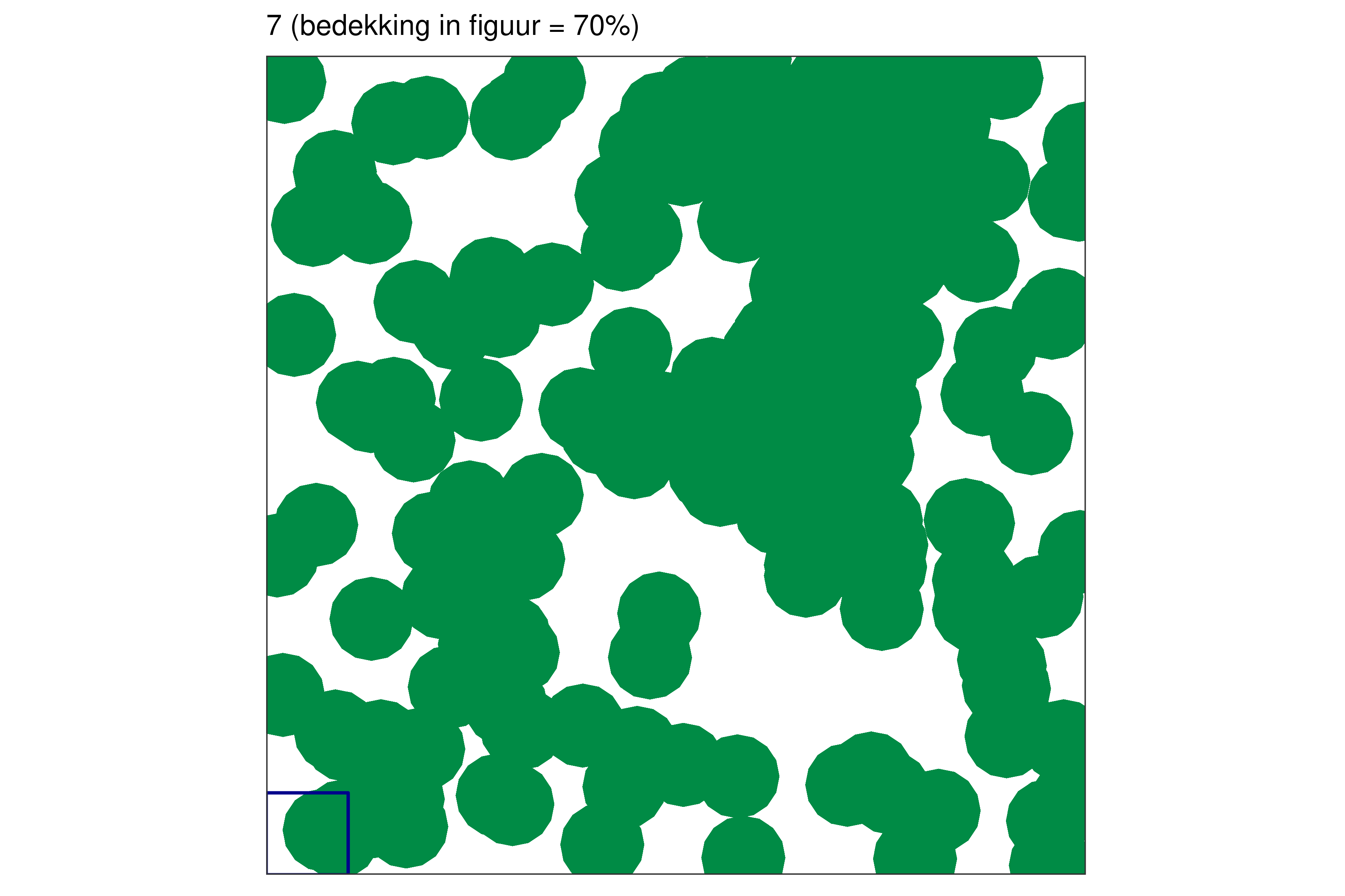 Elk blauw vierkantje in de linkerbenedenhoek bij elke figuur vertegenwoordigt 1% van de volledige oppervlakte.