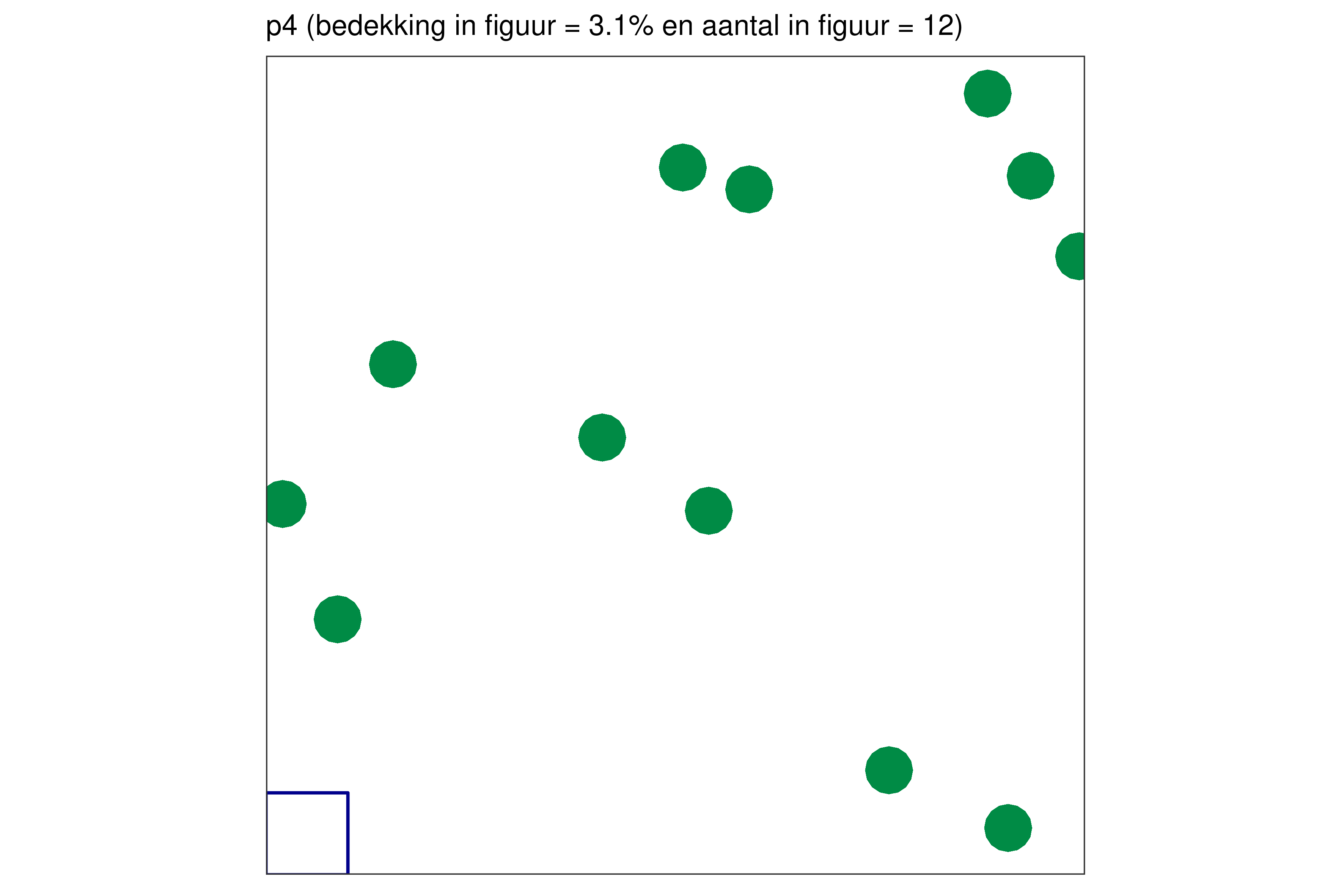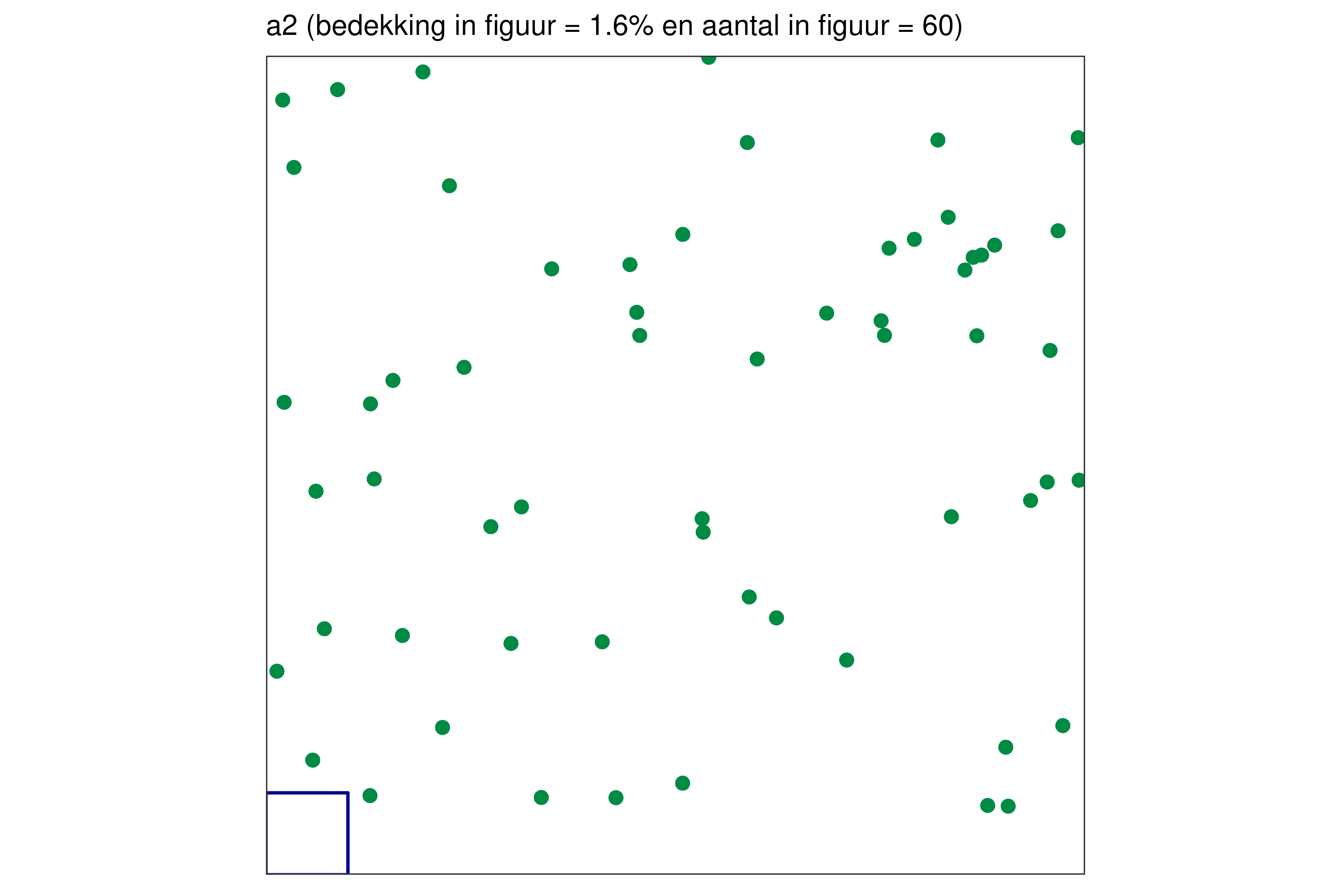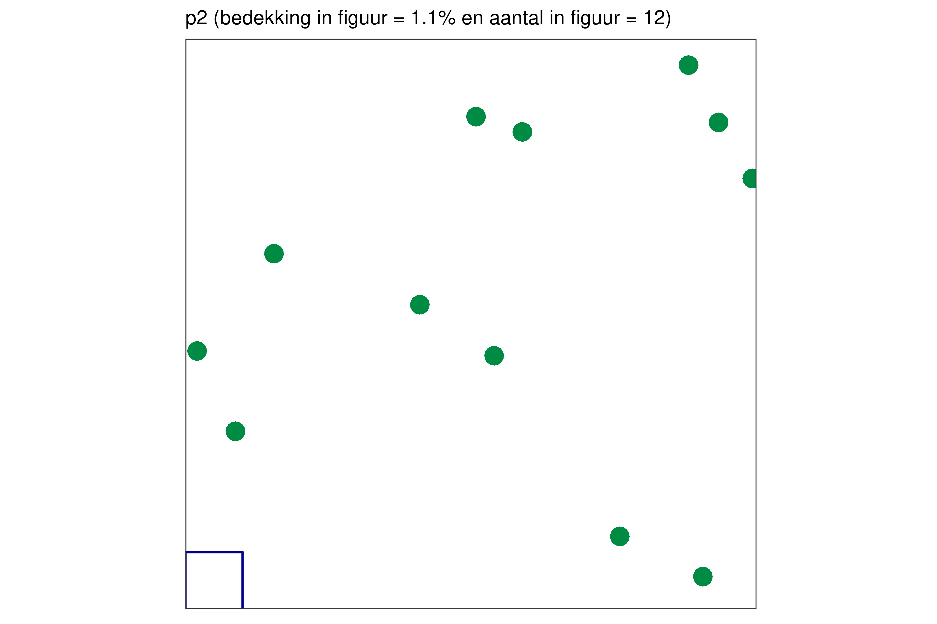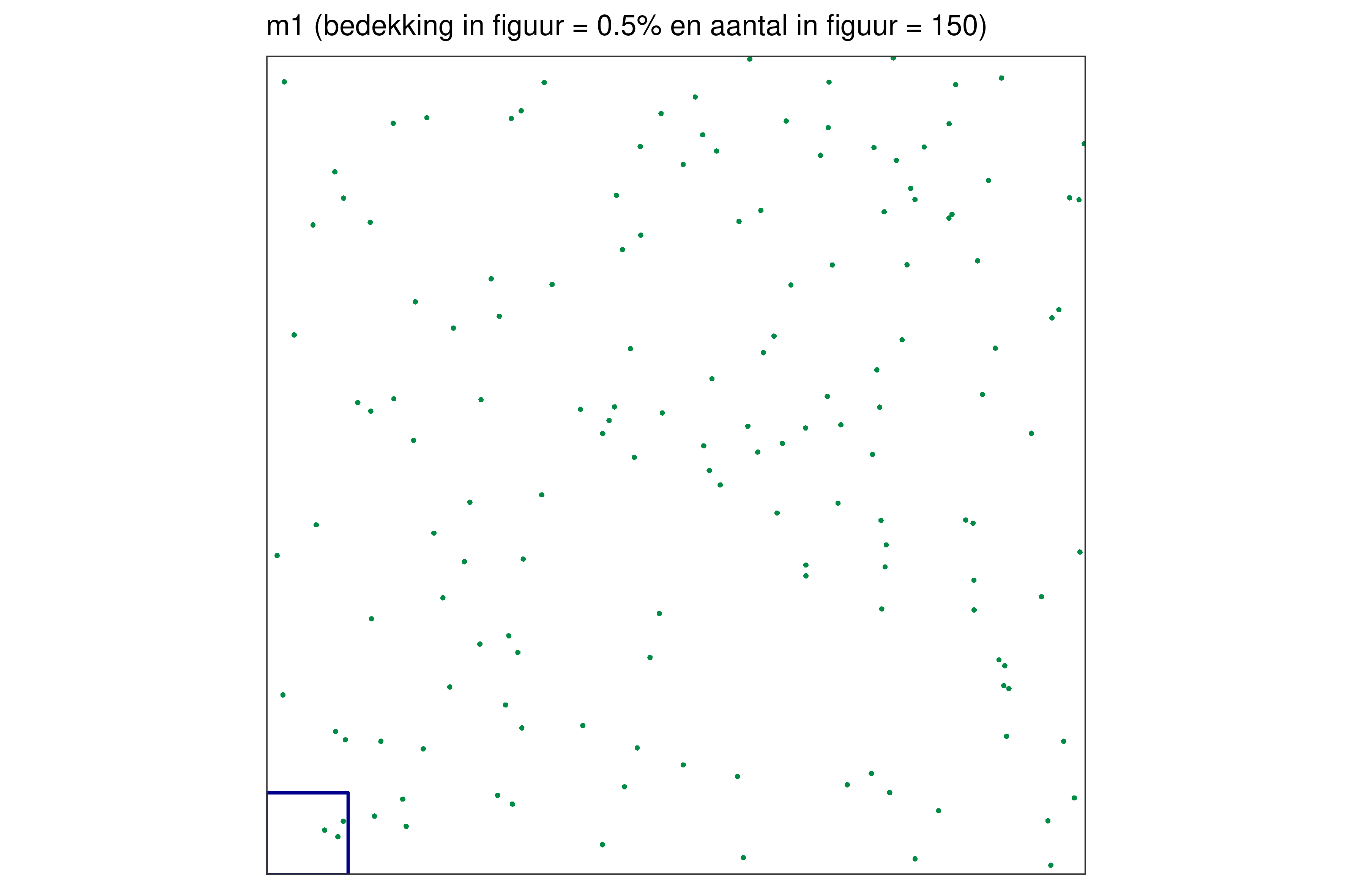 Elk blauw vierkantje in de linkerbenedenhoek bij elke figuur vertegenwoordigt 1% van de volledige oppervlakte.